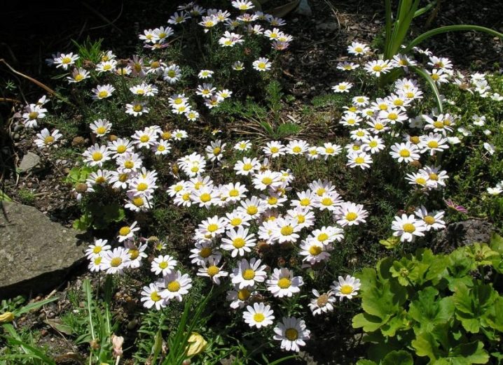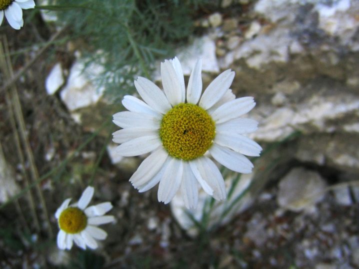 Скальная разновидность, как уже можно судить по названию, обитает на склонах гор, при нижайшем уровне влажности. Это одна из немногих ромашек, которой не требуется обильная влага в почве. Отличительная характеристика этого вида – горизонтальные стебли кустарника, которые стелятся по земле. Чаще всего цветок растет в Альпах и других горах умеренного климата.