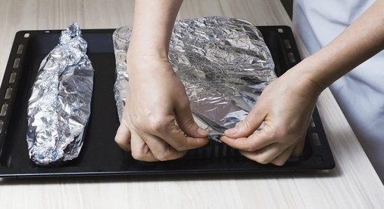 Выберите ли вы фольгу или кулинарный мешок, принципиальной разницы нет. Тут, как говорится, дело подачи и удобства приготовления. В приведенном рецепте применяется фольга, вы же смело можете использовать то, что у вас под рукой.