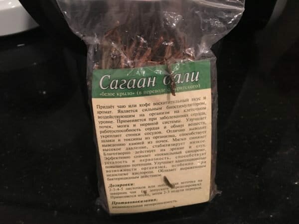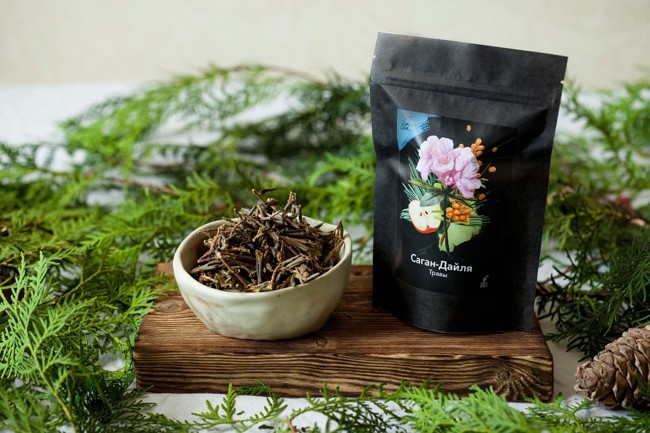 Чтобы получился тонизирующий напиток, можно готовить саган дайля, как заваривают традиционный чай. Щепотку измельченного сырья залить стаканом кипятка, 10 минут настоять. После фильтрования пить целебный настой. Он помогает согреться, улучшить метаболизм, повысить иммунитет.