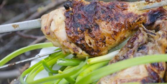 Шашлык из куриных ножек с чесноком на белом вине