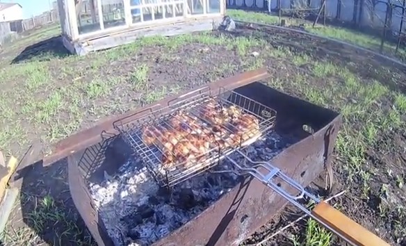 Не забывайте переворачивать шампура, и решетку, чтобы все приготовилось, и не горело.