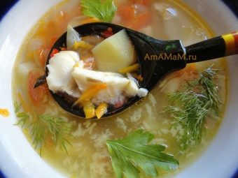 Следом выливаем зажарку. Добавляем 3-4 лавровых листа, 10 горошин черного перца, солим. Варим до полуготовности картофеля. В бульон снова выкладываем рыбу и доводим наше блюдо до полной готовности. Выключаем огонь и ждем 20 минут, пока окуневый суп хорошо настоится. Разливаем по тарелкам и посыпаем сверху измельченной зеленью: укропом или петрушкой.