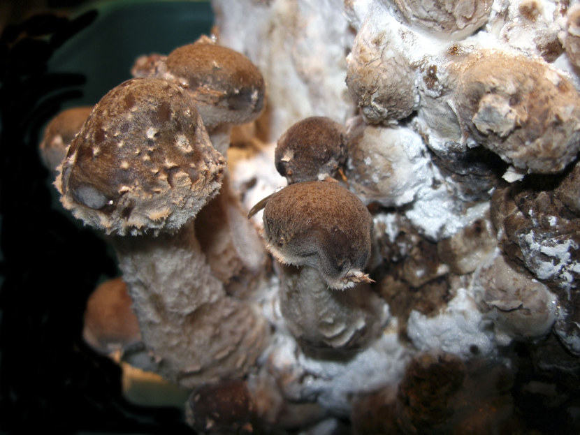 Во-вторых, плодоношение вешенки провоцируют понижением температуры, что должно имитировать приход осени, а шиитаке начинает плодоносить после полива «грядки», чем имитируется сезон дождей. Таким образом, хотя выращивание шиитаке и требует точного следования специальной технологии, вырастить его в домашних условиях проще, чем вешенку, для которой потребуется система климатического контроля.