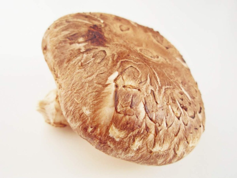 Кроме того, шампиньоны, как и шиитаке, имеют среднюю по размеру шляпку (диаметр достигает 15 сантиметров), которая у взрослых грибов становится выпуклой и распростертой. Наружная кожица шляпки суховата на ощупь, покрыта меленькими чешуйками коричневатого цвета. У молоденьких шампиньонов окраска шляпки изначально белая, а со временем цвет меняется на бурый. Ножка шампиньона ровная, 10 сантиметров в длину и 2 сантиметра в диаметре, растет в форме цилиндра, который немного сужается ближе к основанию плодового тела.