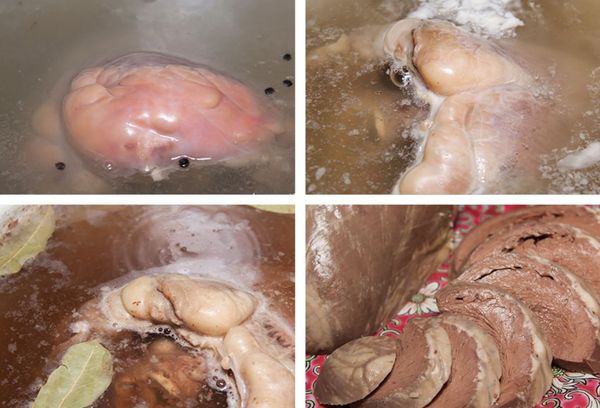 - Отварить до готовности субпродукт. Нарезать кубиками.