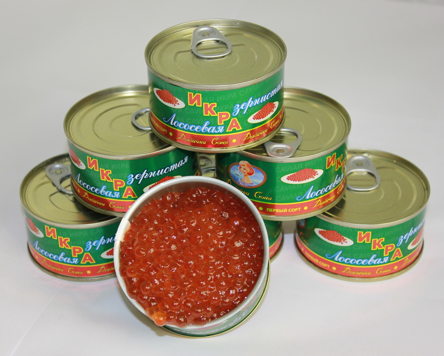 Открытую банку с икрой
