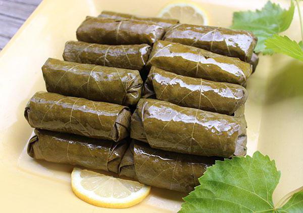 Если говорить о рецептах с виноградными листьями, на ум сразу приходит долма. Это восточное блюдо покорило многих своей простотой в готовке и насыщенным вкусом. Если есть возможность готовить его из свежих виноградных листьев – лучше ею пользоваться, но подойдут и консервированные. Второй нюанс – мясо. Долму обычно готовят из баранины, хотя многие хозяйки делают это блюдо таким же невероятно вкусным с использованием свинины, говядины и даже курицы. Для создания такого кулинарного шедевра понадобится 500 грамм фарша, 100 грамм рисовой крупы, 2 луковицы, 2 зубчика чеснока, 200 мл воды, соль, виноградные листья, зелень и специи.