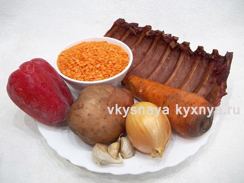 Суп пюре из красной чечевицы с копчеными ребрышками, рецепт приготовления с пошаговым фото
