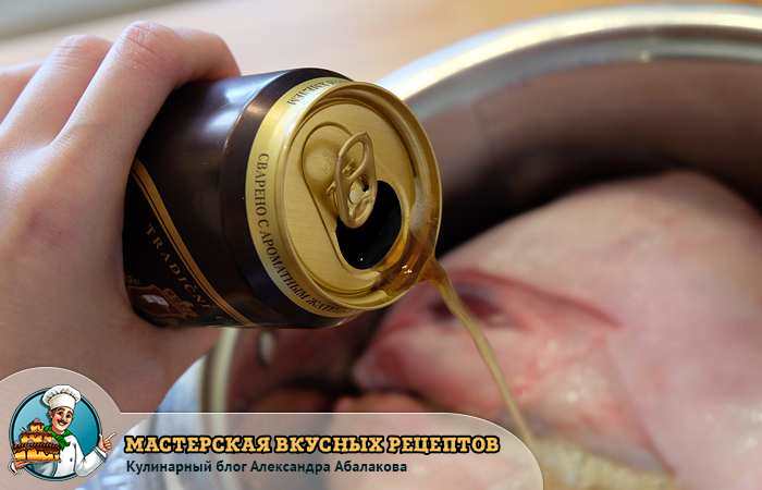 Готовить блюдо начинаем с маринования в темном пиве.