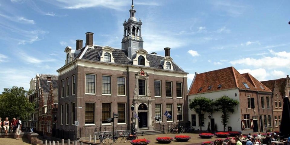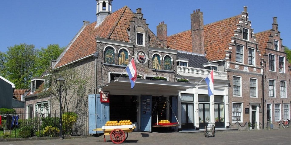 Хотя сырные базары в Эдаме существовали с XVI в., Весовая палата (De Kaaswaag) появилась значительно позже – в 1778 г. Построили её для взвешивания сыров, поэтому фасад здания выходил на площадь, где торговали сырными продуктами. На здании De Kaaswaag до сих пор сохранились красиво украшенные панели, где в центре изображен герб Эдама – на красном фоне бык с тремя звездами, а по бокам картины, связанные с процедурой взвешивания.
