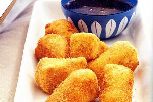 - С помощью щипцов или вилки сыр надо обмакнуть сначала в яйцо, потом в муку, опять в яичную массу и напоследок в панировочные сухари. Такая двойная обработка маленького кусочка позволит сыру не растекаться во время жарки.