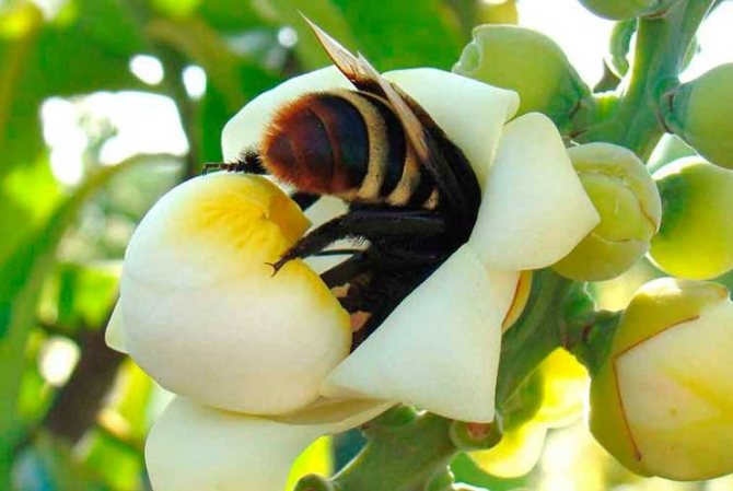 Опыление цветков бертолетии дикими пчелами.