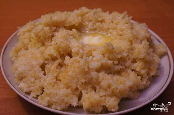 - Масло, добавленное во время варки, делает кашу рассыпчатой. Сливочное можно заменить растительным.