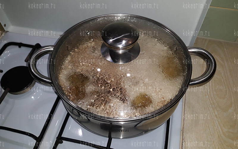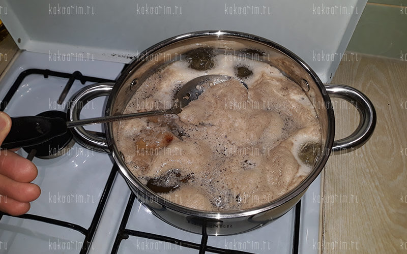 - Если на поверхности воды образуется пленка, уберите ее ложкой или шумовкой.