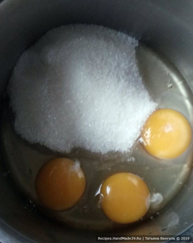 Соединить яйца, соль, сахар, взбить миксером пару минут до растворения сахара.