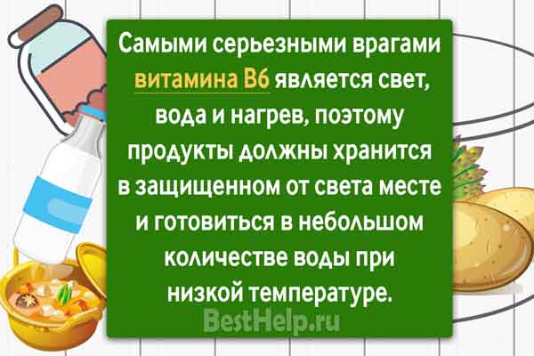 Однако стоит учитывать, что В6 распадается при термической обработке. Поэтому во время приготовления этих блюд нужно выбирать рецепты, в которых будет небольшое действие высоких температур или отсутствует вовсе.
