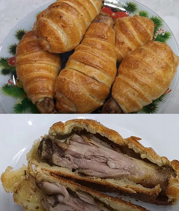 Голени или бедрышки в слоеном тесте