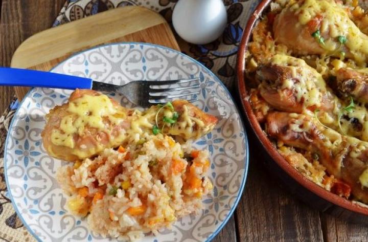 Готовим вкусные куриные ножки с овощами и сыром