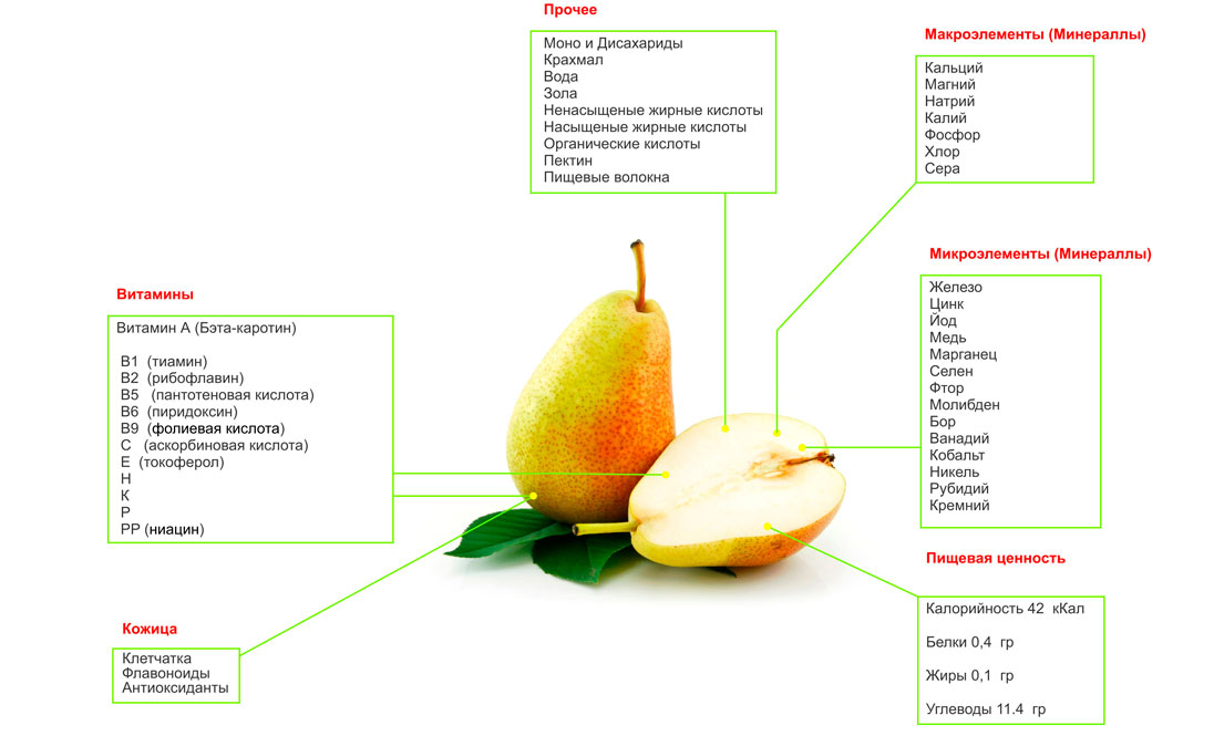 БЖУ и КБЖУ сортов груши на 100 грамм