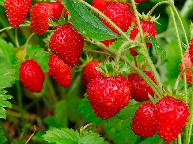 Плоды плотные, сочные, весом не больше 6 граммов. Окрас – красный, форма – коническая. Кусты плодоносят до самой осени, усов не формируют. Использование – десерты, заморозка, приготовление варенья, джемов.