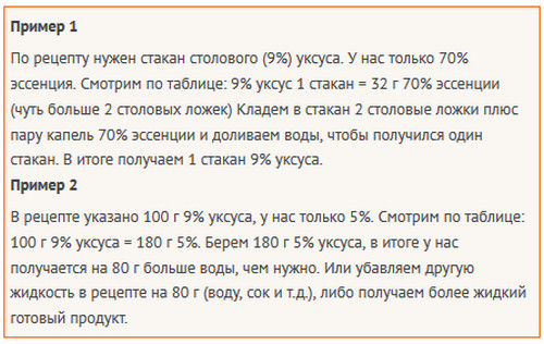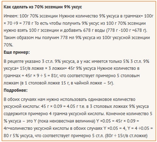 Если рецепты требуют именно столовый уксус, не нужно самодеятельности, развести следует в таких пропорциях: