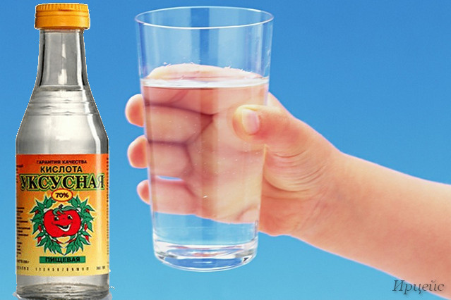 - 1 л-ка эссенции на 11 л-к воды (6% уксус).