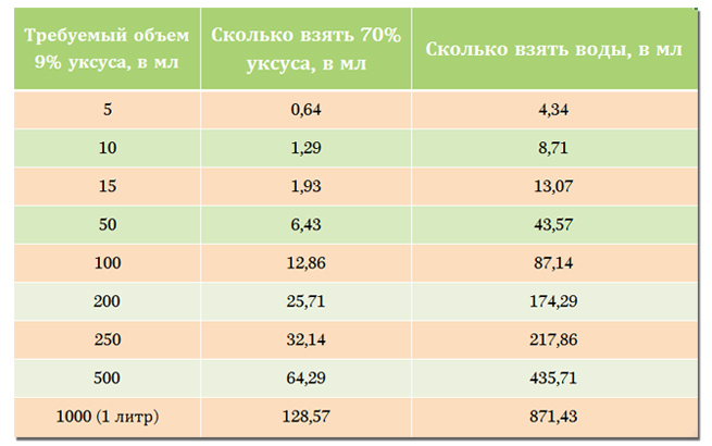 Как правильно разводить уксус? (примеры + мерные таблицы)