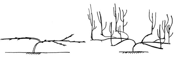 В следующие годы крону каждого побега формируют как маленькое деревце. Рост других вертикальных побегов угнетают, прищипывая или надламывая.