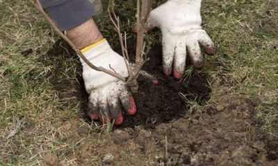 выкопайте ямку на месте посадочного холмика, соответствующую размеру корней
