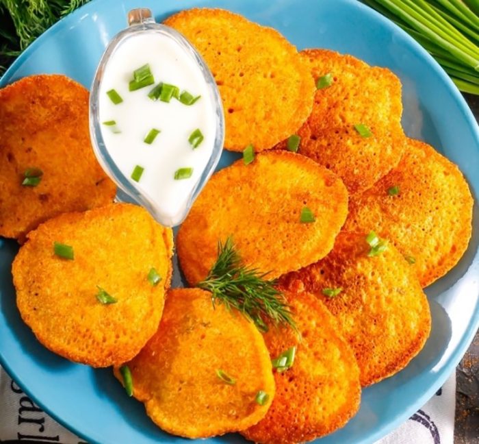 - Разогреть масло на плите и выкладывать «оладьи из икры» столовой ложкой. Каждую сторону жарить на небольшом огне примерно 5 минут.
