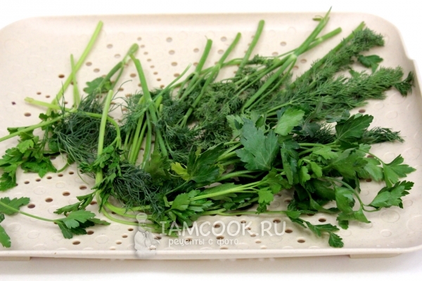 Зелень помоем и обсушим.