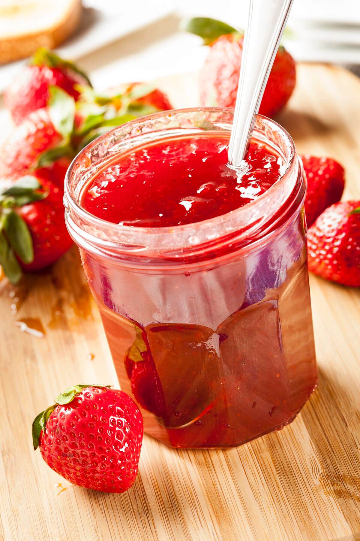 Конфитюр готовить сложнее, чем варенье, но это очень вкусный десерт. Для приготовления понадобится: 0,5 кг клубники, 300 г сахарной пудры, 5 г пектина, 3 г агар-агара или желатина, 1 г лимонной кислоты. Если опасаетесь, что конфитюр получится приторным, можно добавить маленькую щепотку кардамона.