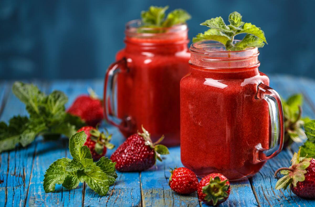 Для основы понадобится несладкий натуральный йогурт низкой жирности. Добавить в него можно не только клубнику, но и банан, другие ягоды, чайную ложку меда. Все это взбить в блендере, можно добавить пару кубиков льда и листик свежей мяты. Такой напиток не только вкусный, но и очень полезный, а калорийность невысокая.