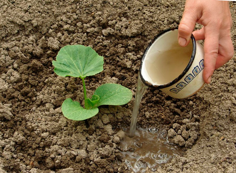 Чтобы поддержать влажность грунта, свободную от посадок часть огорода укройте землёй или полиэтиленом. При нехватке влаги перед посевными работами полейте землю тёплой водой: это повысит шансы на успешное выращивание тыквы.